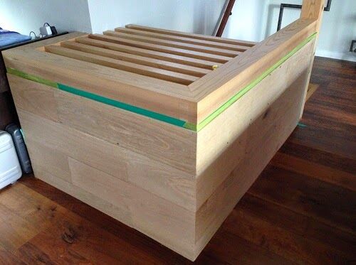 12月半ばの短い日中、取り寄せた4mm厚オーク板を鋸でカットしては貼り付けていく作業。薄く柔和でいかにも聞き分けのよさそうだったオーク材はここにきて突如として暴れ始め、施工者を大いに困らせる。見た目は同じように見える板にも個性があり、中には鋸で…